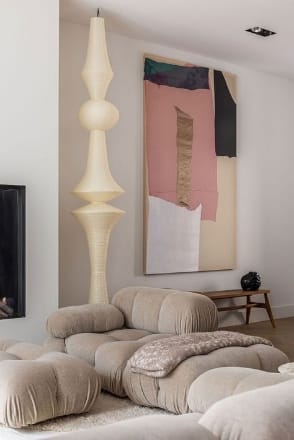 In compact rooms, keep large pieces close to the floor and let vertical elements like windows, shelving or lighting lead the eye up.⁠